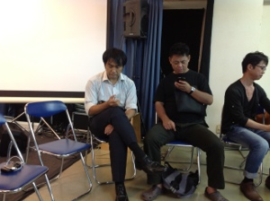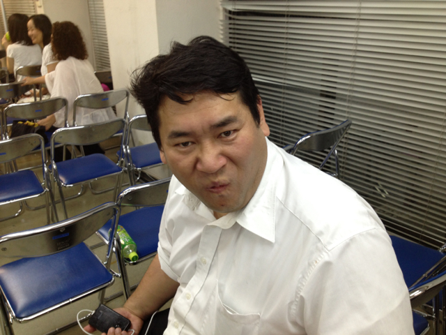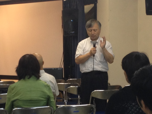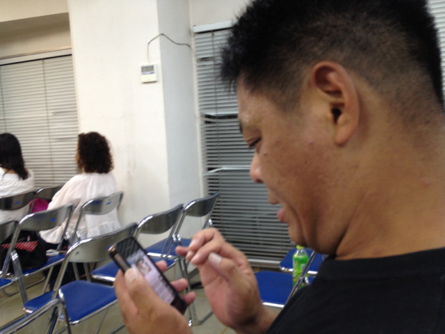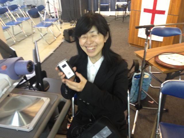 伝道師会にくるやいなや、おもむろに写真をとりまくる益川さん。 被写体のブログ部長、真境名牧師も面食らってます!