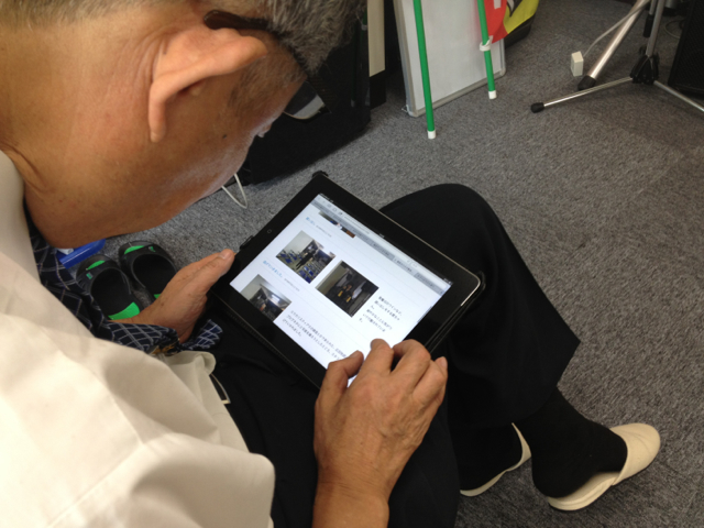 ホームページをチェックされている秋元牧師。このようにホームページはドンドン進んでいます!