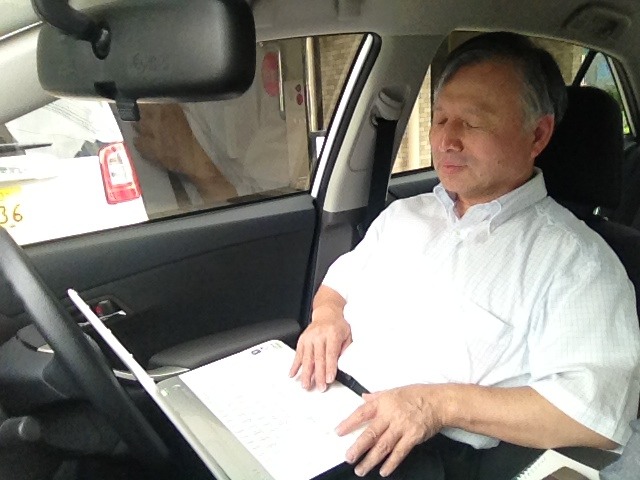 ある地方教会のHPの更新をしています。いつも作業は車のなかで! amagai