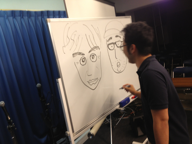 先程、ヨハネくんが描いていた似顔絵は、今回アメリカにいくふたり!ヨハネくん本人とサトPでした!是非そちらのブログもご覧ください! Samuel