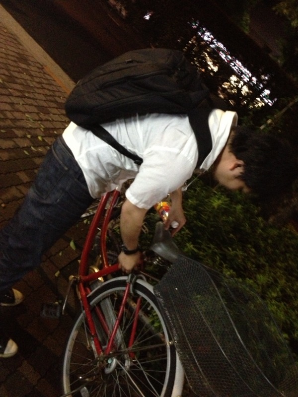 これまたチャリンコで帰る藤田さん! お疲れ様!