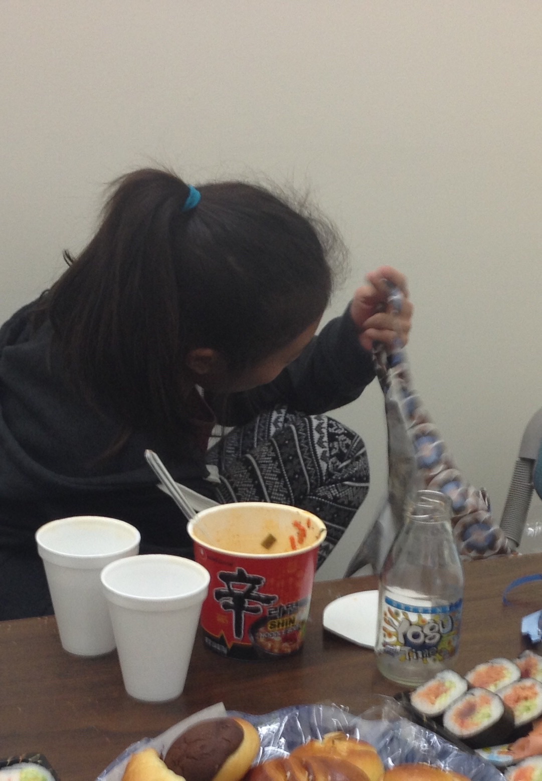 愛ちゃんは、先ずは辛ラーメンからでした。スンドゥブ大好きな辛党です!(*^^*) ロサンゼルス F