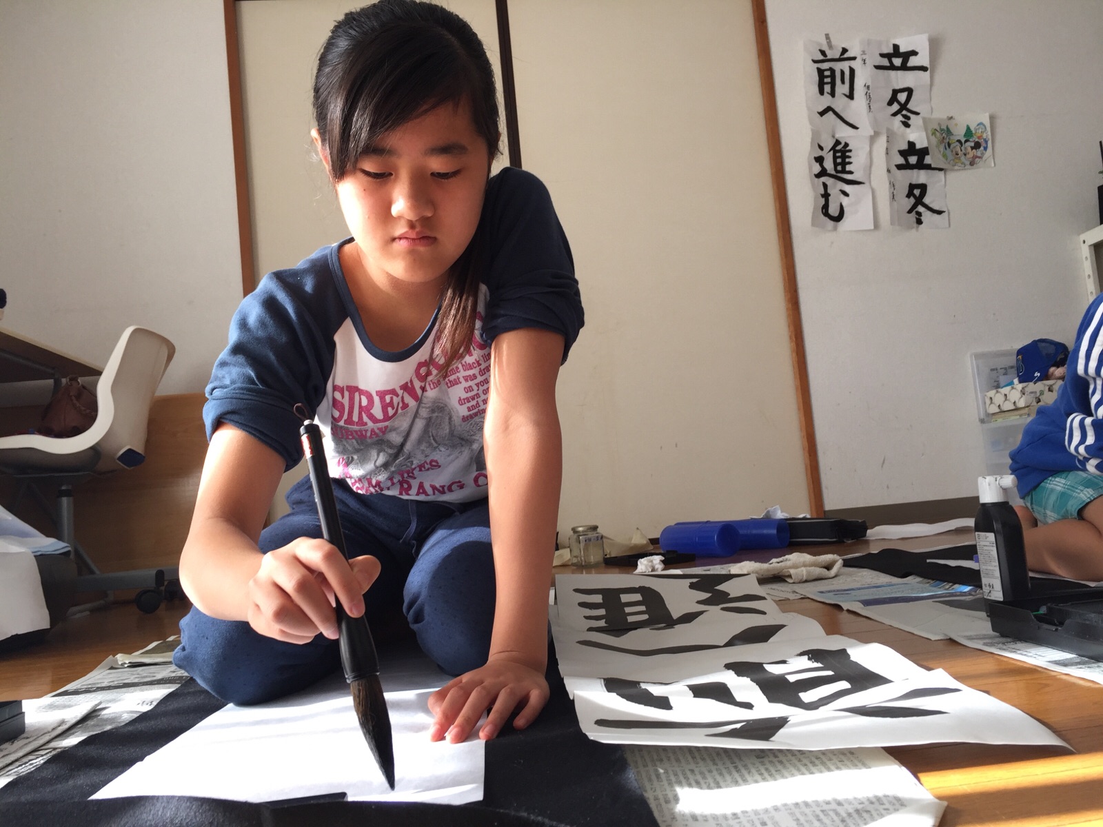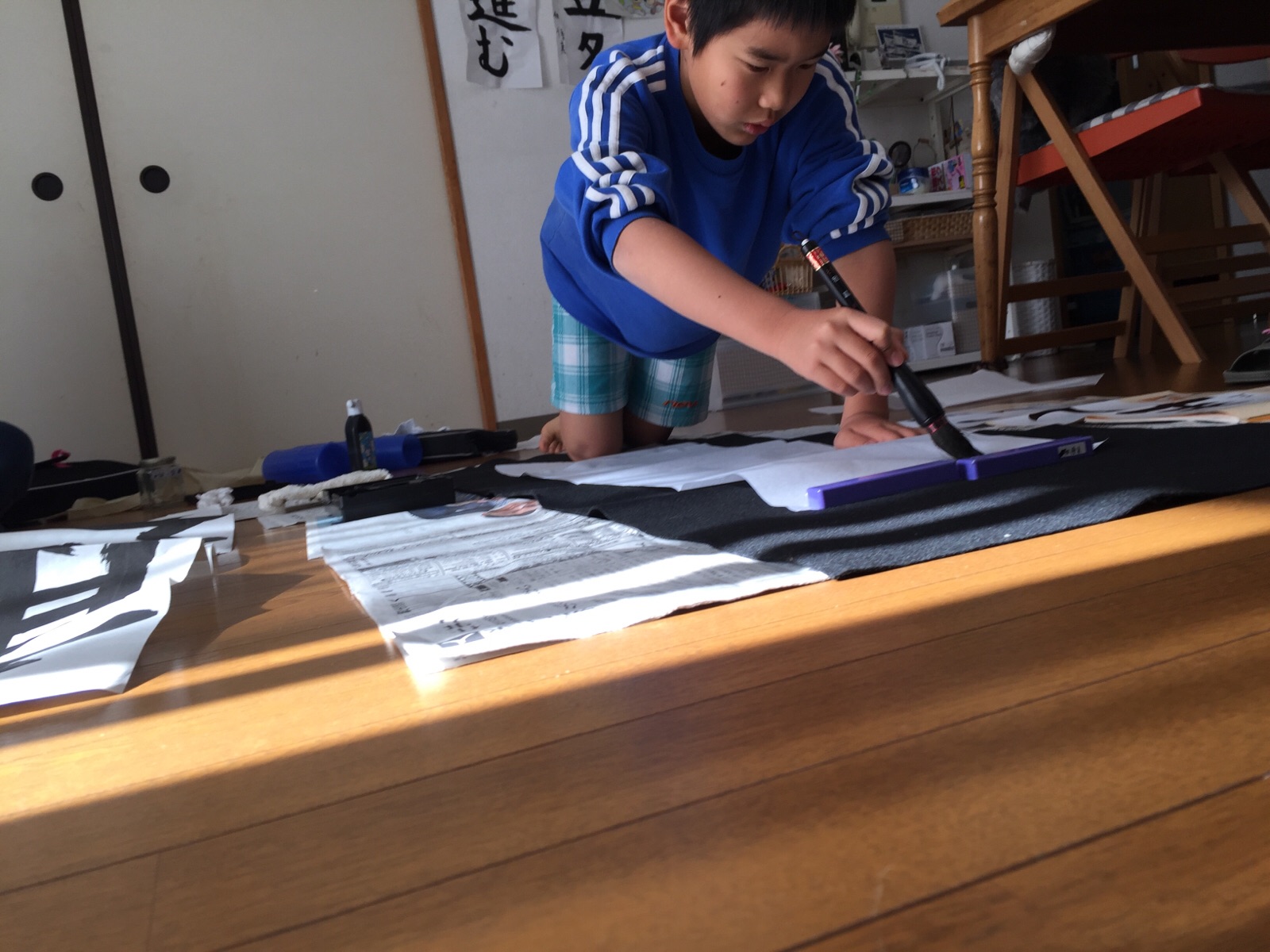 半紙を踏んではいけないと思っていたらしい息子。その姿勢無理がある(笑 大和教会 hannah.t