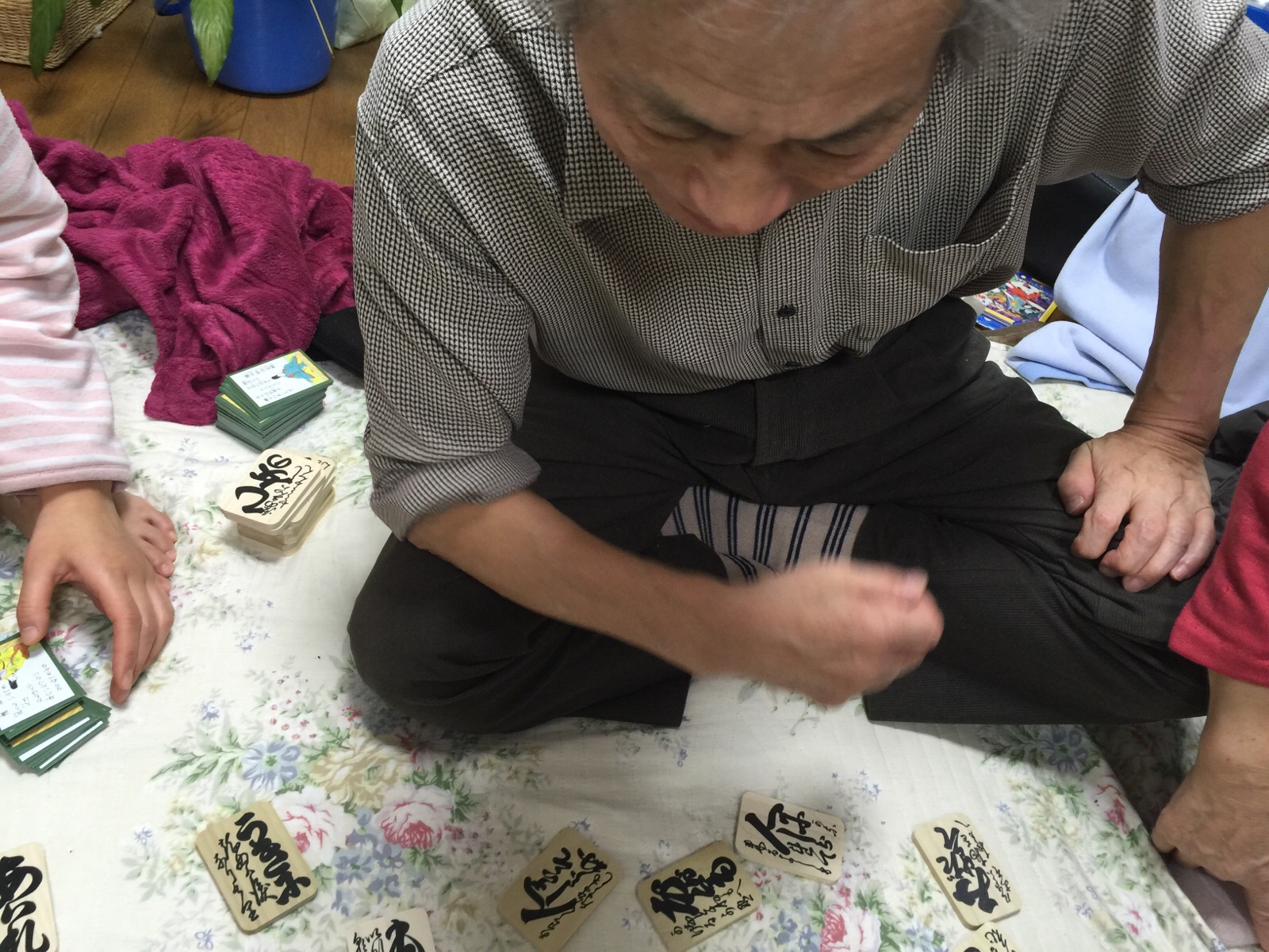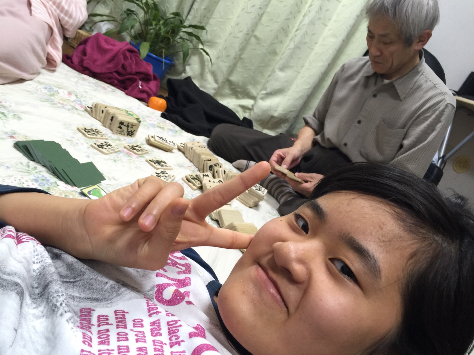 おじいちゃんより1枚多く取れた〜〜!! 少し、悔しそうな父(笑 大和教会 hannah.t