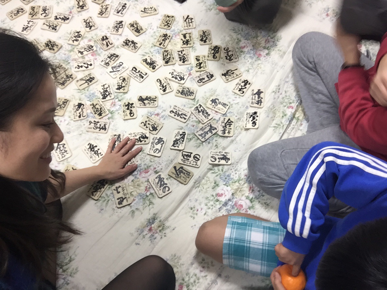 息子の宿題で覚えないといけないそうなので、みんなでカルタ! あれ?息子は、みかん…。笑 大和教会 hannah.t
