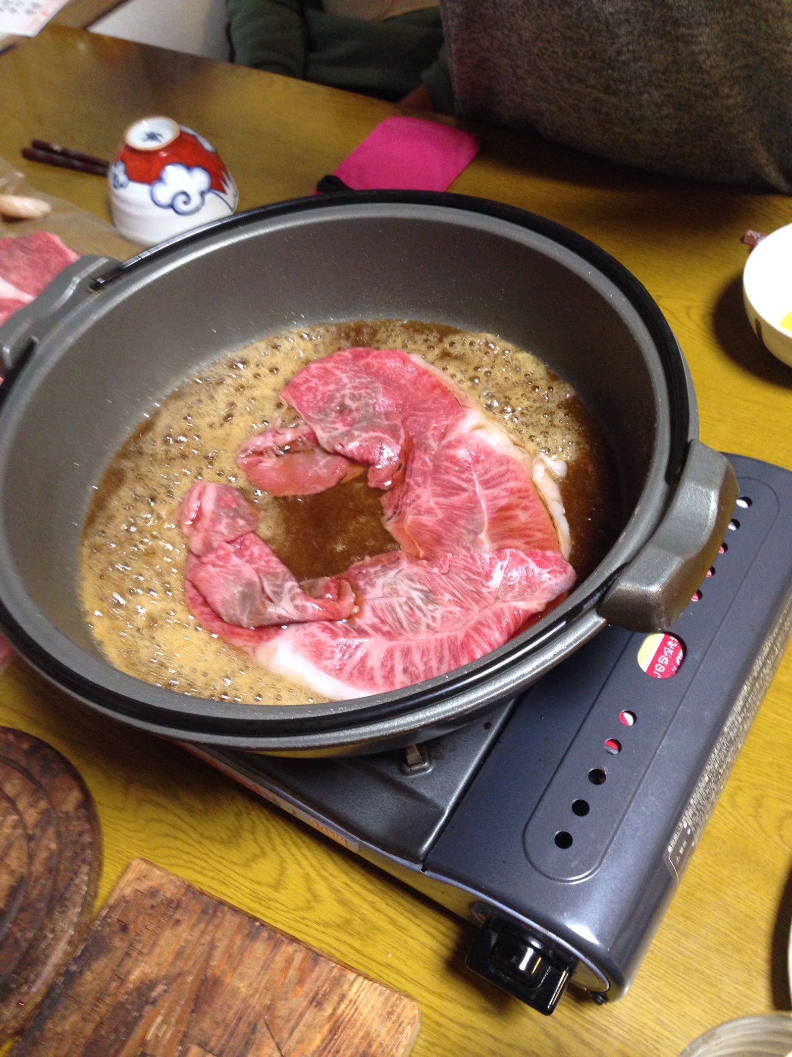 お正月恒例の、すき焼きです。 松阪市民は、お正月は松阪牛です。 やはり、美味しい。 鍋奉行は、父です。