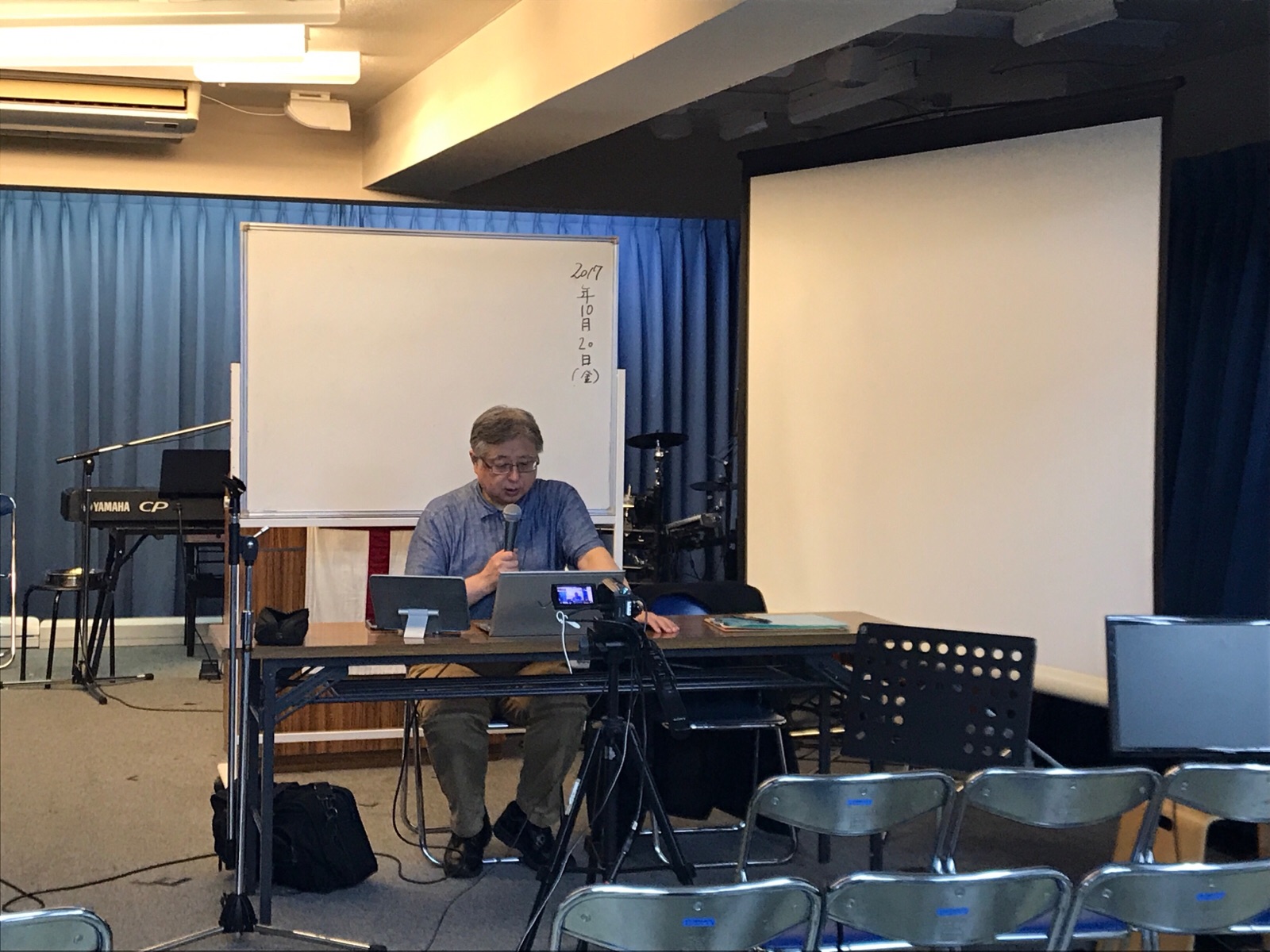 会堂では『英語聖書』の授業、神学校事務所では『聖書神学と基本教理』の授業です!