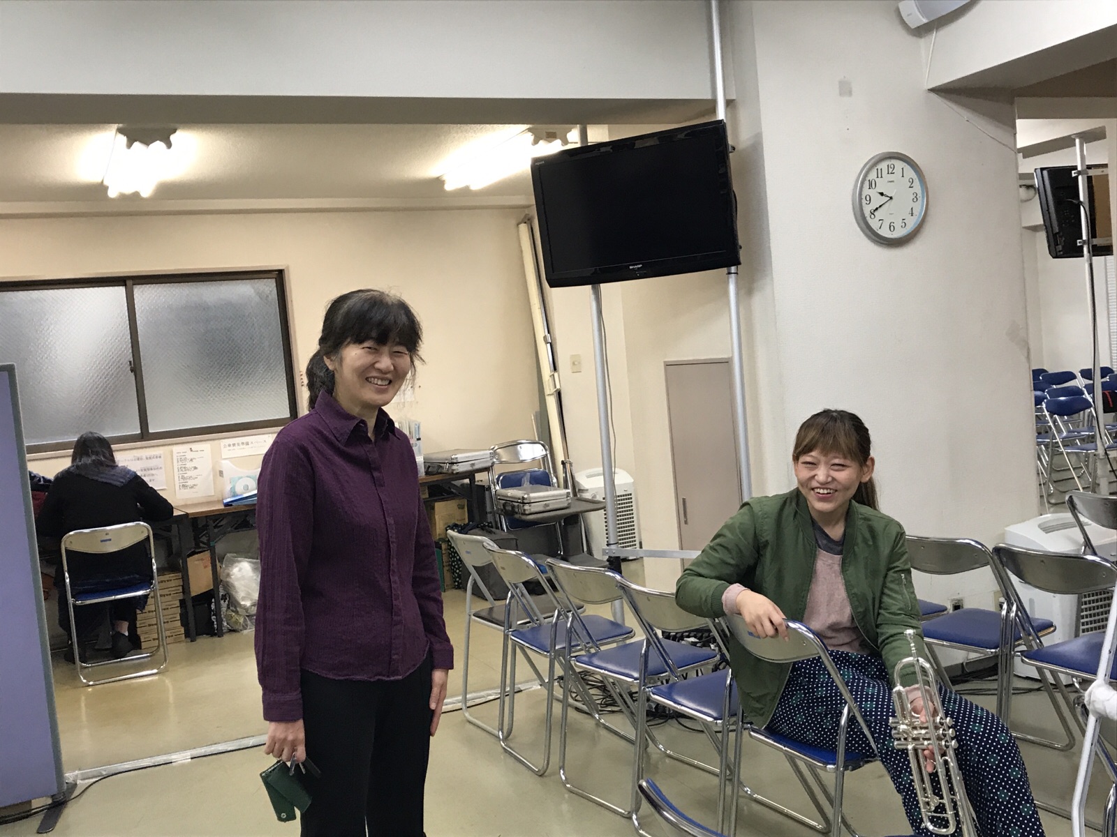 プレイバック。トランペットの音が聞こえと、次つぎと会堂に来られる方々。P涼子さん.ジュンジュンさん、etc 足は、順調ですか? お