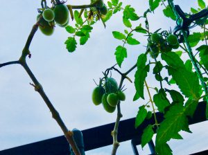 青空が見えてきました。明日は晴れるみたい。 ミニトマトは寒空の雨の中でも、大丈夫でした。