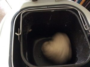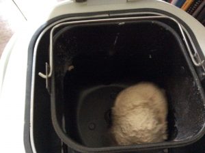 今年度からパン作りを始めました。今日も今週分を作ります。まずは、こねるから。HBで。