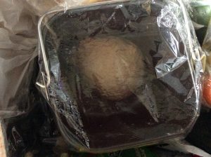 こね終わったら、野菜室で自然発酵させます。 二、三倍に膨らみます。