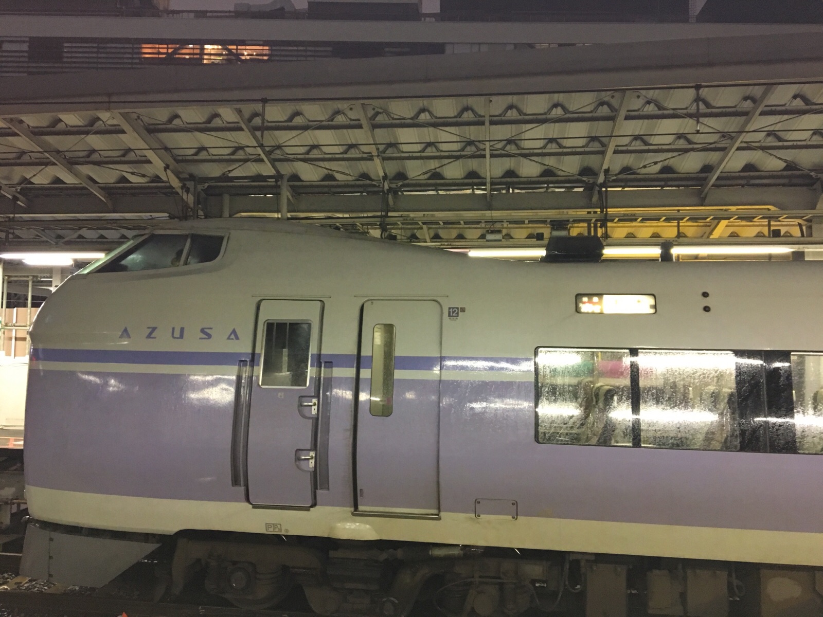 用事があり新宿に。ホーム寒いけど背中のリュックであったかいです♪ホーム、目の前には、あずさ号が♪白馬キャンプ今年も祝福いっぱいだったなあ。来年も楽しみ!エステル清水