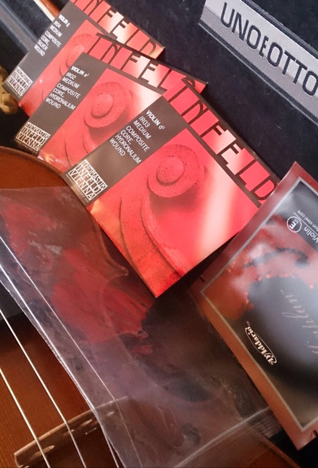 赤い袋の中身は弦 すごく沢山の種類があります。 私の楽器とこの弦の相性、抜群! 値段もお手頃で、助かってます(*^^*) 北岡