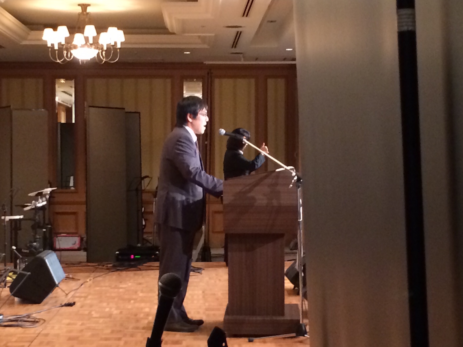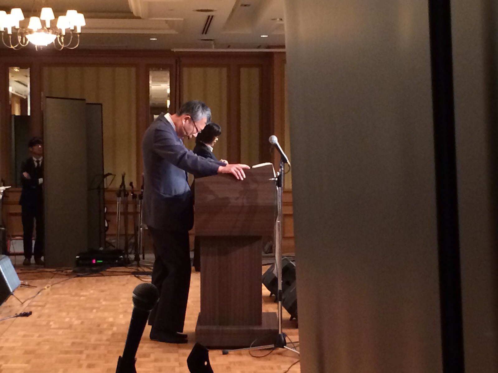 オーケストラ統括の辻郷さん、会場の一番後ろでメッセージを聞いてます。