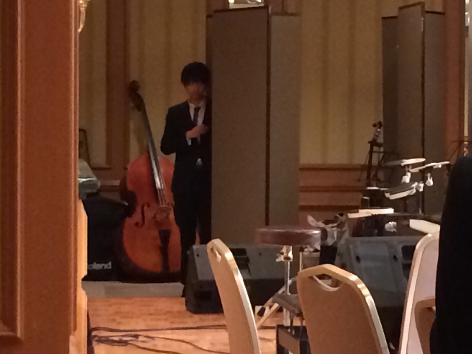 オーケストラの皆さん楽器を持って席に戻りましたが、コントラバスはあそこに置いてあります。