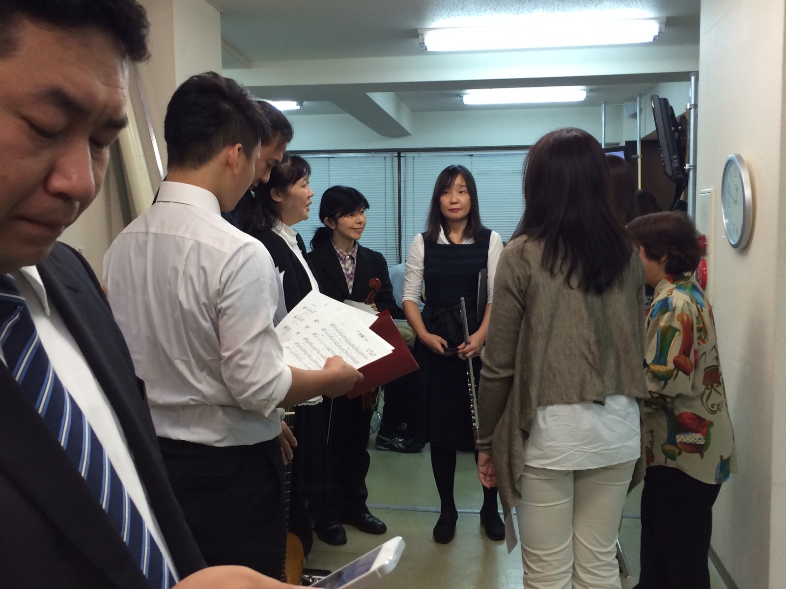 ブログの為にいいショットが撮れるとこを探してます。 オーケストラ統括の辻郷さん。