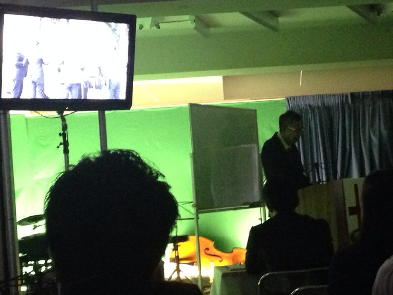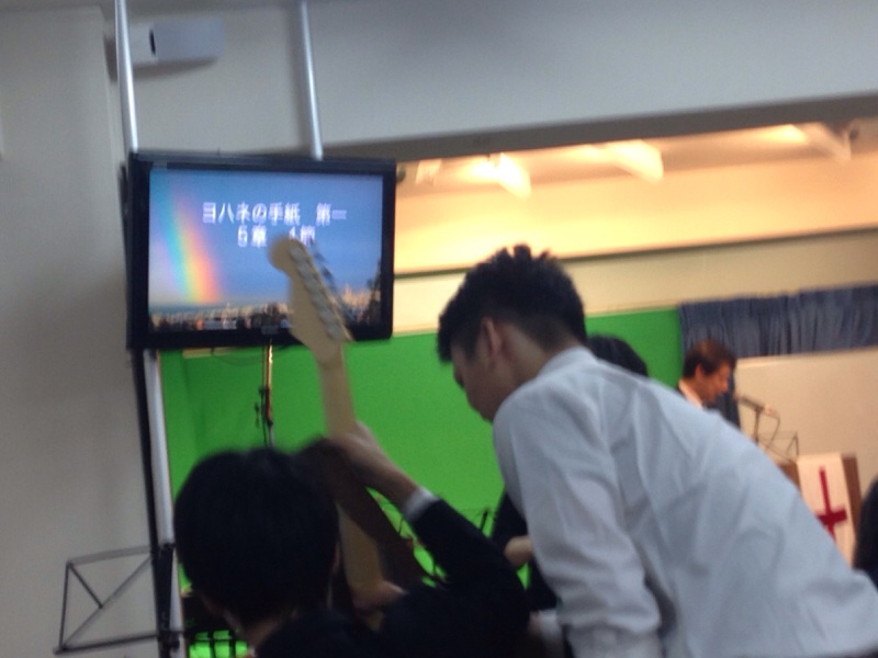牧師賛美が始まりました。初デビューの稲川さん、頑張っています。