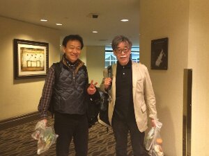 弓野理事と杉澤牧師です。ハリウッドへ行く前のようです。映画界の方のようですね。(灯)