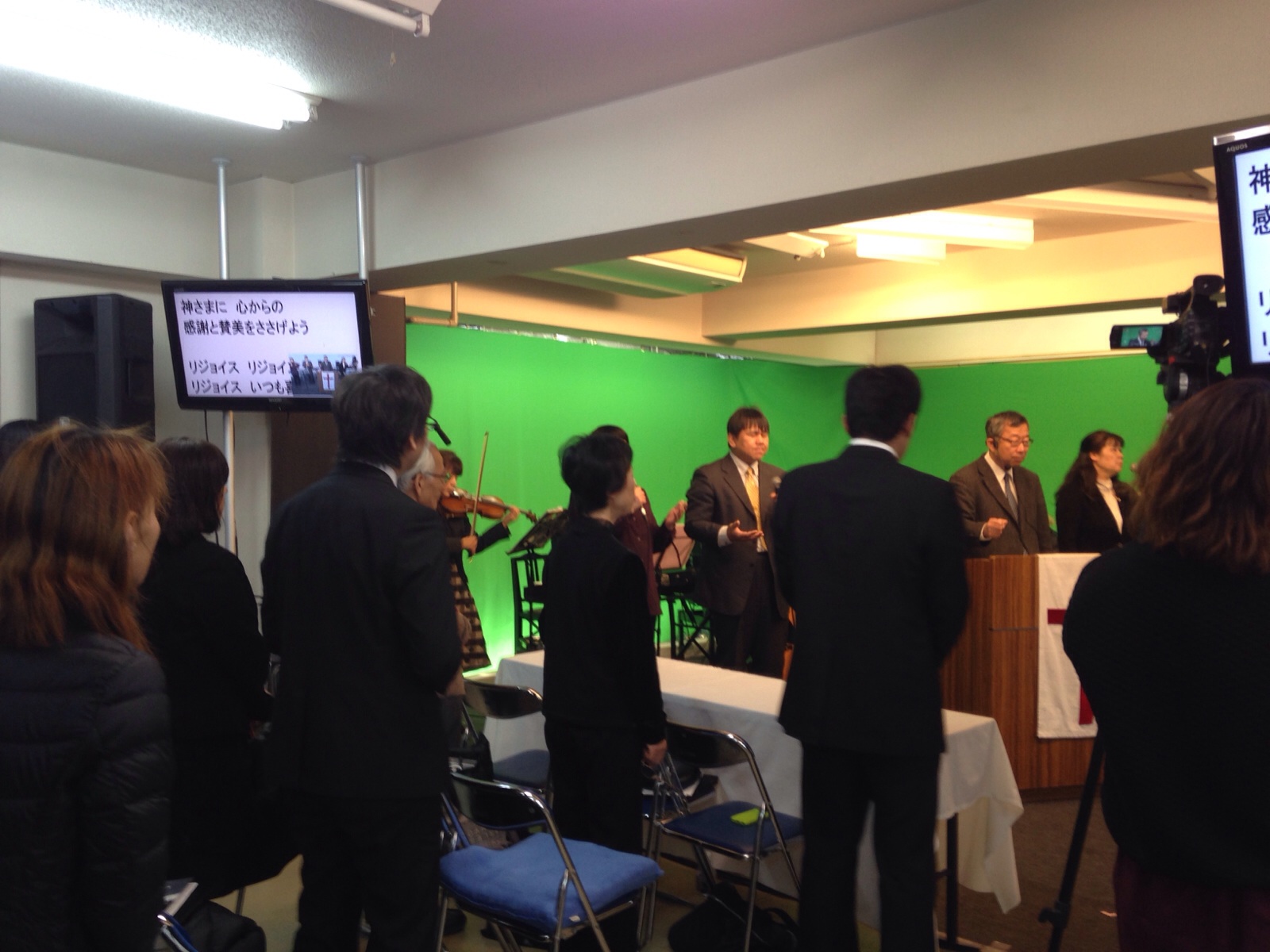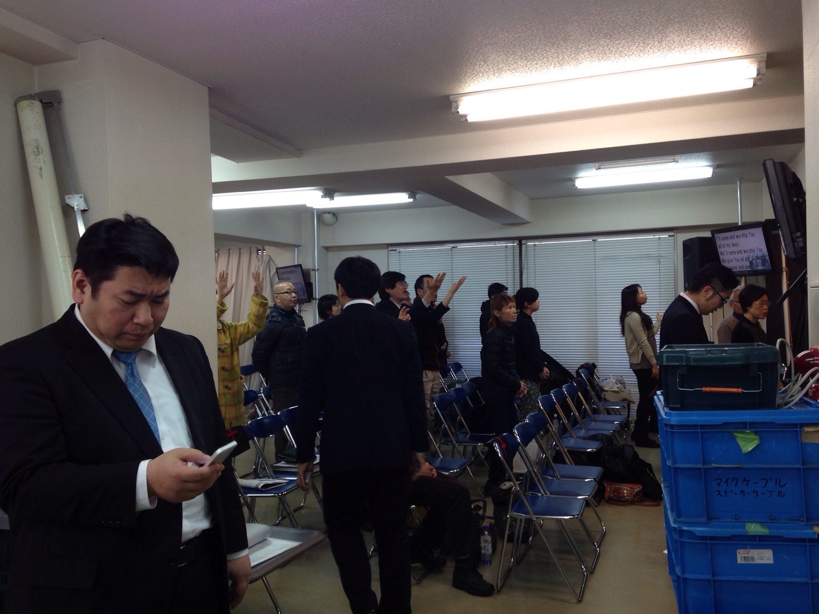 第二礼拝特別賛美・キブツのグループで賛美する総主事。yoshino