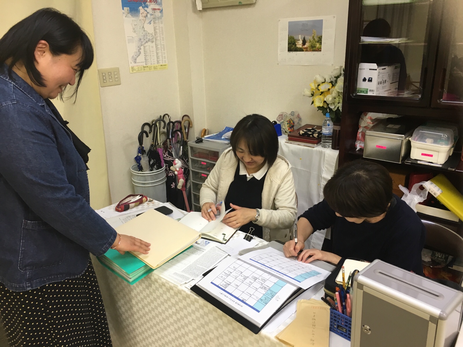 令子さん、幸代さん、加奈ちゃん3人で、伝道のお手紙準備中〜! 四日市 みうら