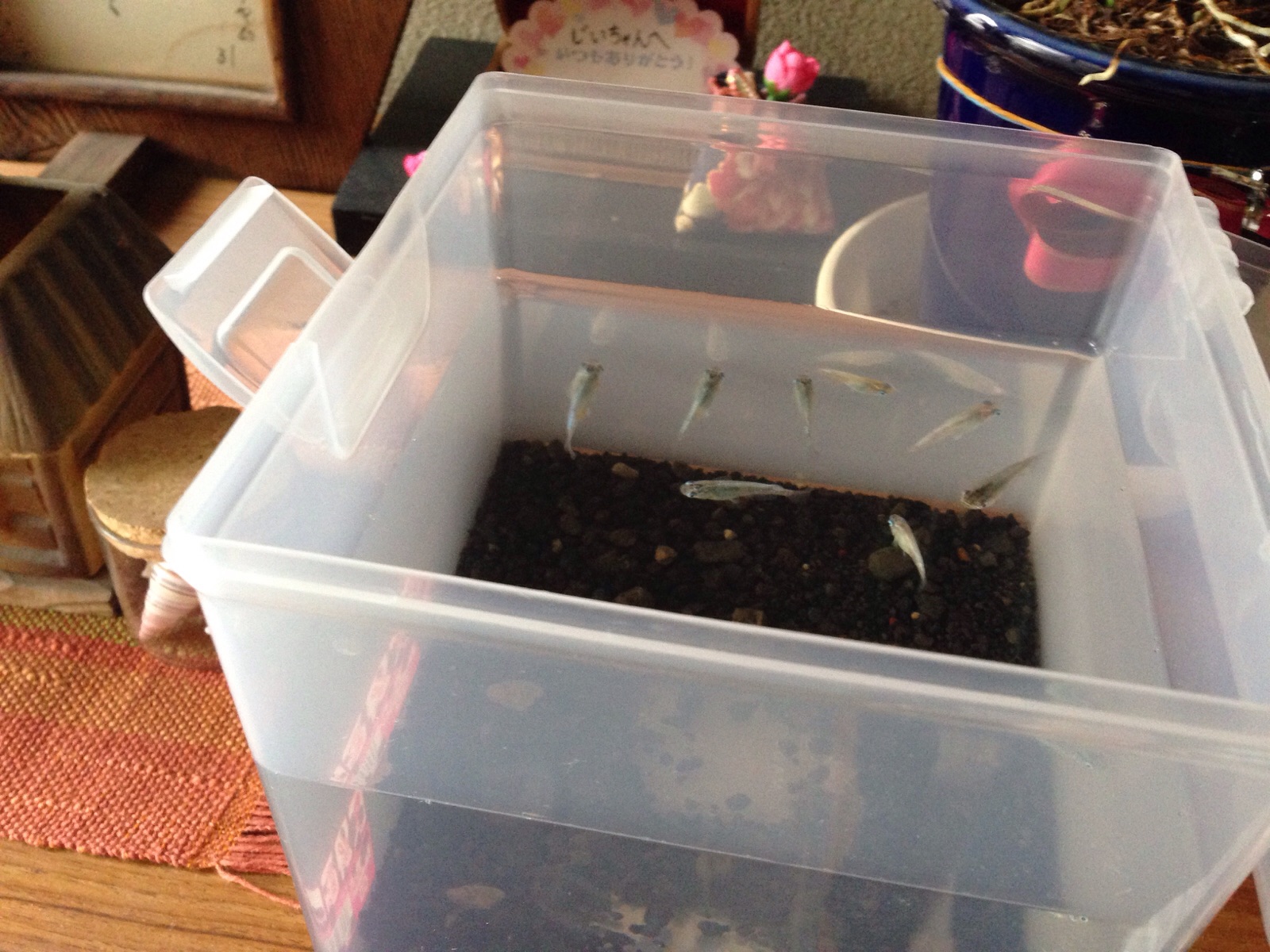 今まで1度も興味を示した事なかった人が。 どうした心境の変化か。 メダカも、うちにお世話になるとは、知るよしもなかったろー。 ま、母をよろしく。 岡山 村上ょ