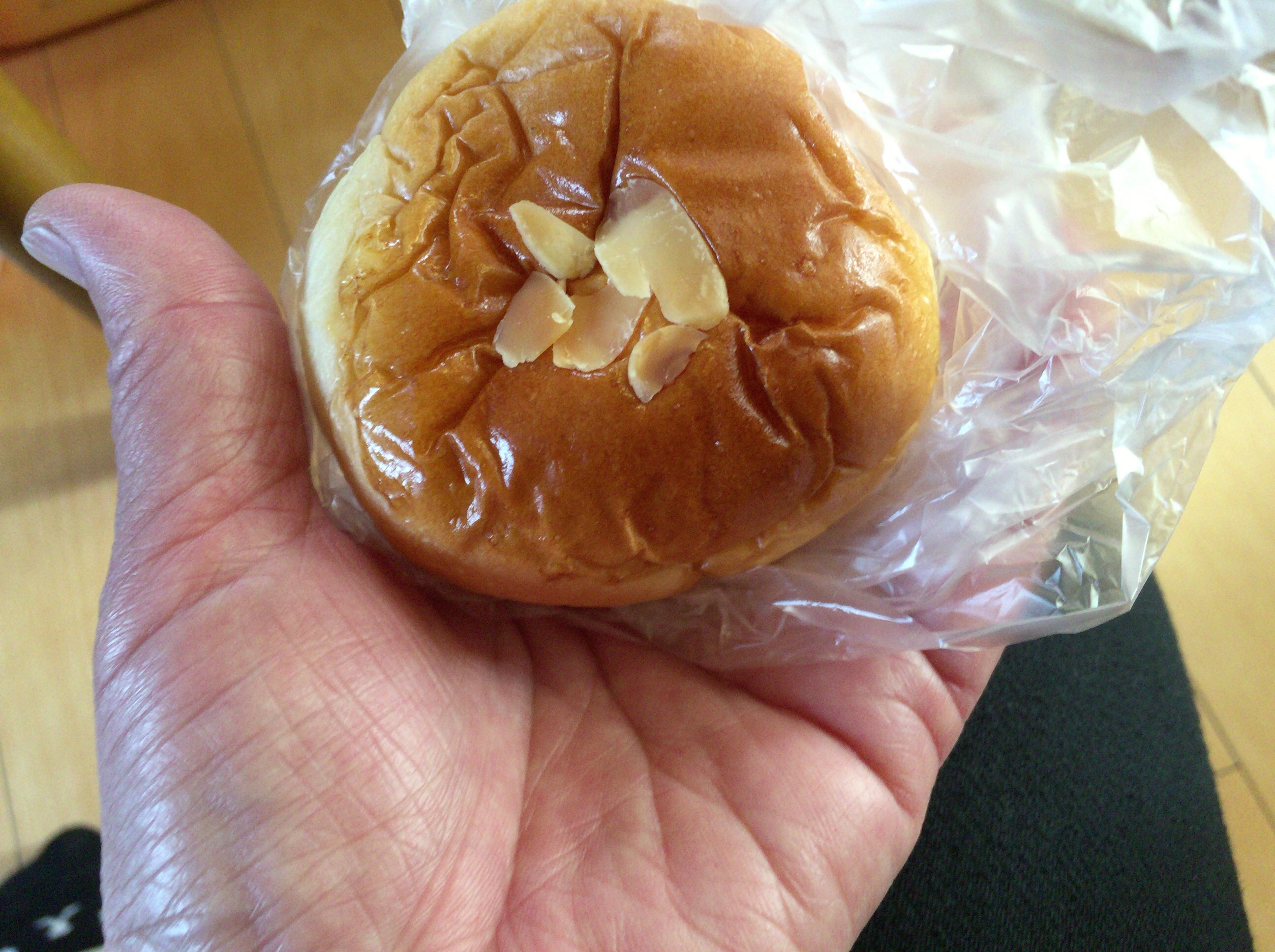 営業している、お店も長蛇の列です。 おにぎりはなく、パンはすぐ売り切れてしまいます。 それも1人1個しか買えません。 主人が買って来てくれた小さなクリームぱんです。 感謝して頂きます。