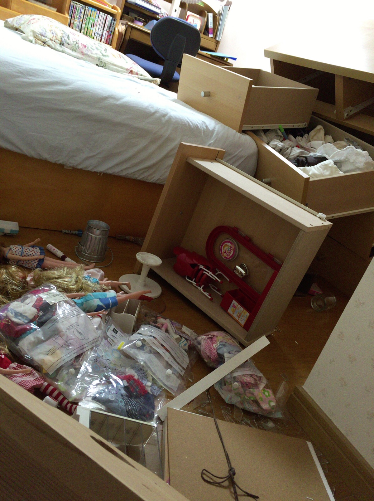 地震当日の娘の部屋もぐちゃぐちゃでした。今は天草市に避難していますが、木曜日から学校も始まります。それまでに水道が完全に復旧して、食料も足りるようになればいいなあと思います。 熊本 akamine