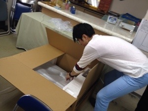 新しいミキサーと〜ちゃく! 出西牧師、開封します。