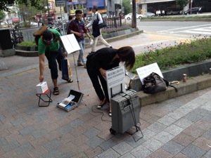 平日も中心地で路上ライブ。 平日はカラオケが活躍!