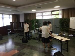 午後から老人ホームでコンサートです。 只今、準備中です。 兵庫フィラデルフィア賛美隊