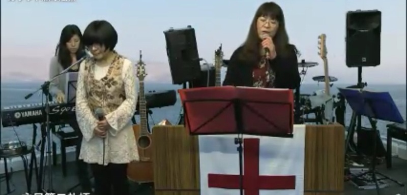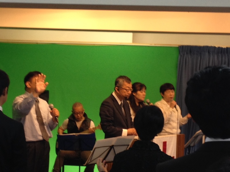 第二礼拝の牧師賛美。 コーラスには、昨日沖縄から帰ってきた前田牧師も立っています。