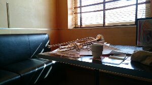 カラオケスタジオ「おんちっち」で、トランペットの練習中。 in阿佐ヶ谷~。