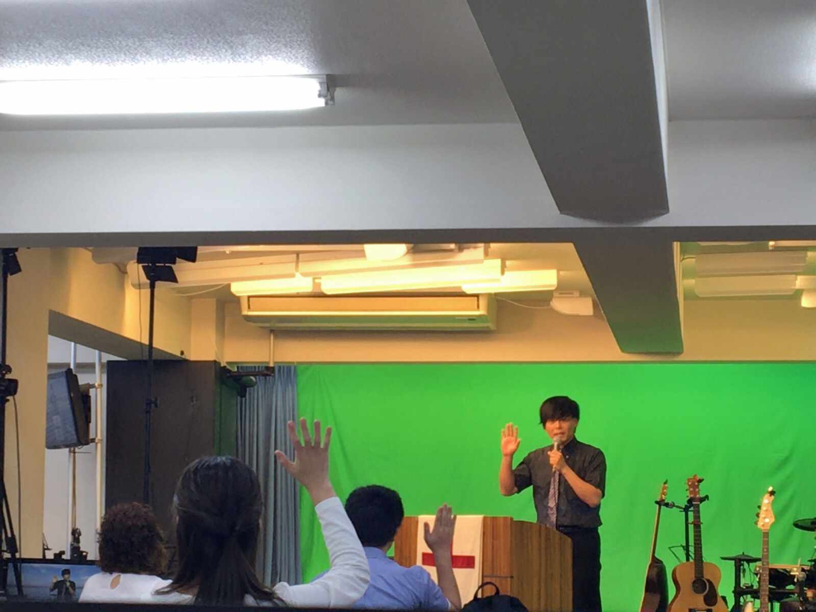 ゴスペルの集いで救いの祈りのあとに手を挙げてます。 Yui