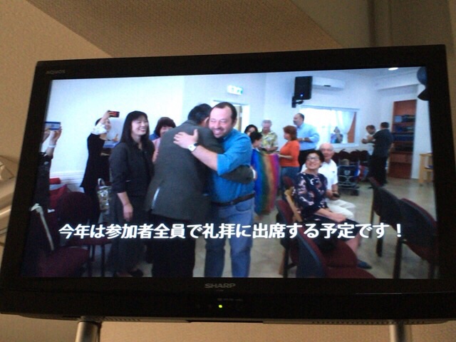 第一礼拝でイスラエルの映像を見ています。