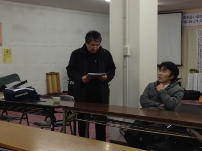 会堂にて談話中。祈祷院情報も集めています。