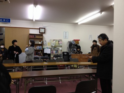会堂でちょっと休憩休憩。それにしても、寒かったですね