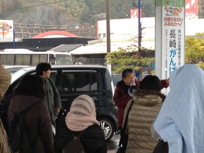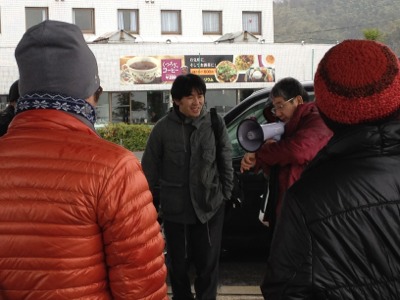 スピーカーのマイクが調子が。いまいち。なので、じかに直接拡声器をもって、お話を。