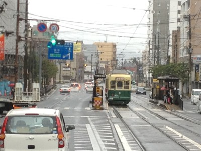 時津から西坂の丘へ。路面電車がレトロっぽい?