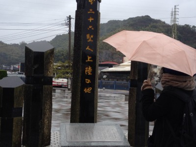 当初は日中上陸の筈が、キリシタンの暴動を恐れた役人たちは、26聖人に海上で一晩過ごさせ、明け方前に上陸する事にしました。