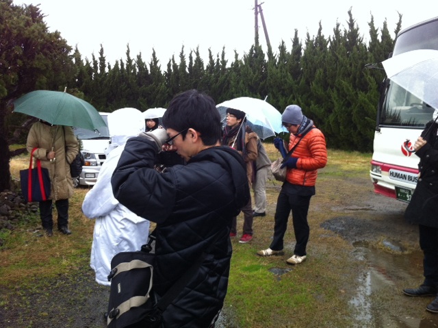 雨が降ってないような笑顔。カメラを向けても恐れまったくなし。