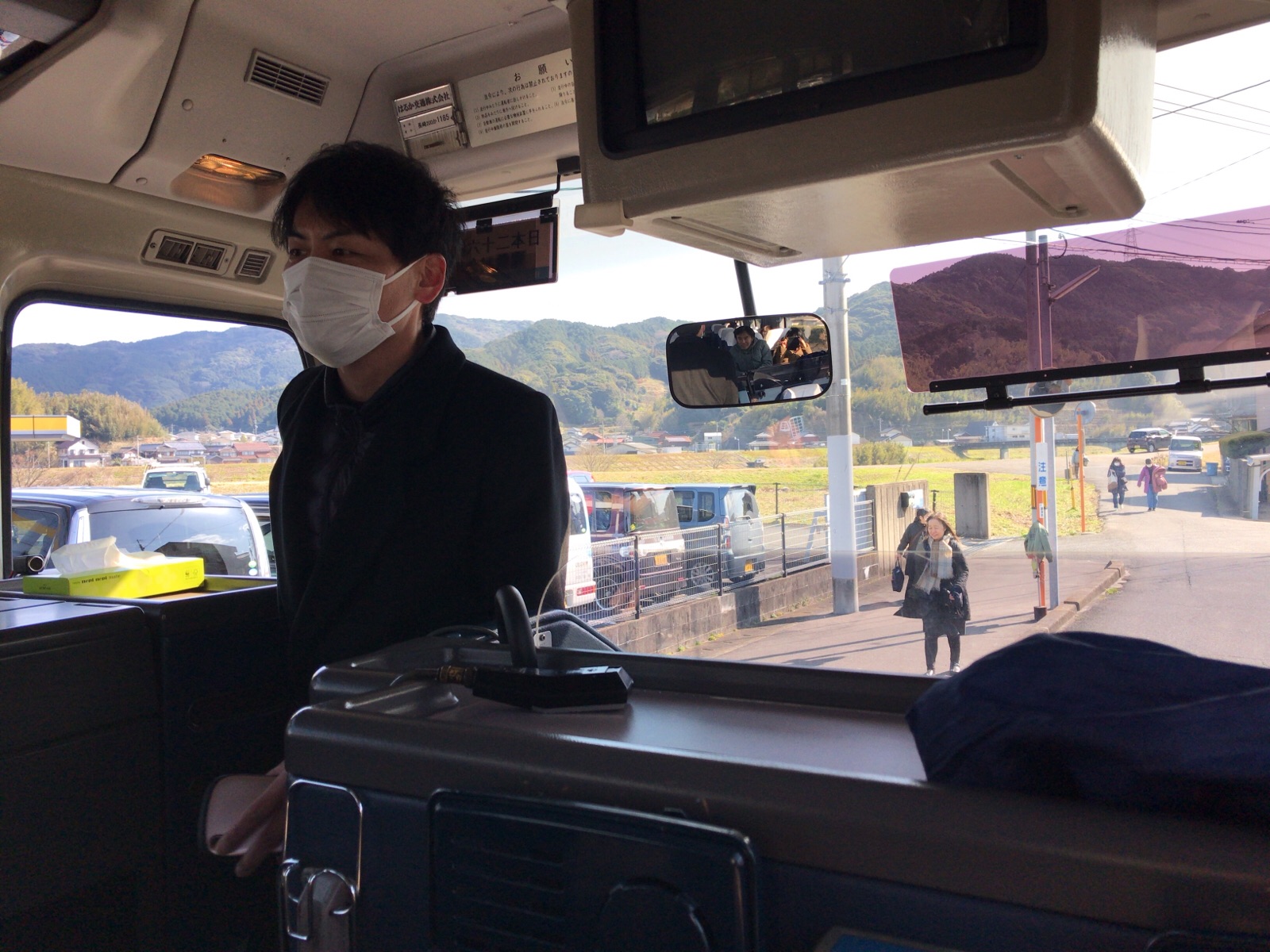 お祈りが終わって、バスに戻ってきました。