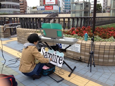 今日の路上ライブ準備中風景です。風が強い日でした。