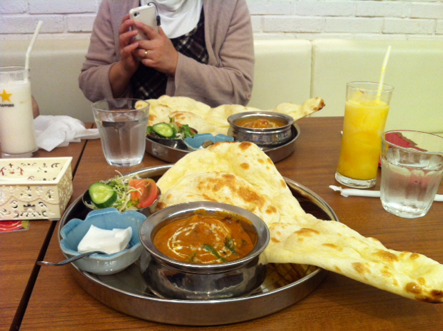 夕飯に、駅ビルのインドカレー屋さんに来ました。本場はやはり美味しい。
