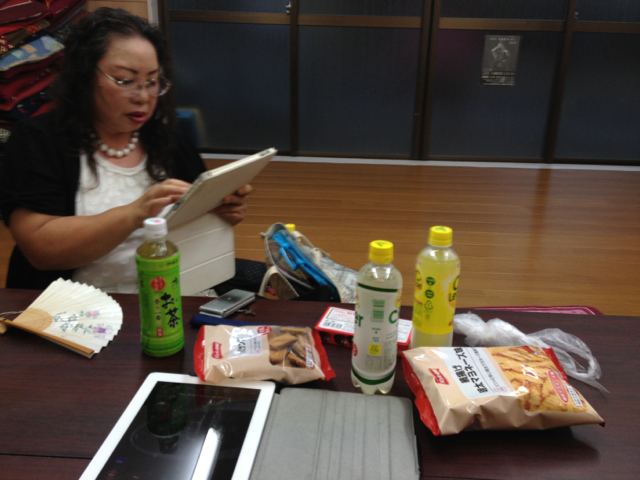 調べ物のiPadとおやつを用意して、ホッとなひと時☆の収録準備中です。