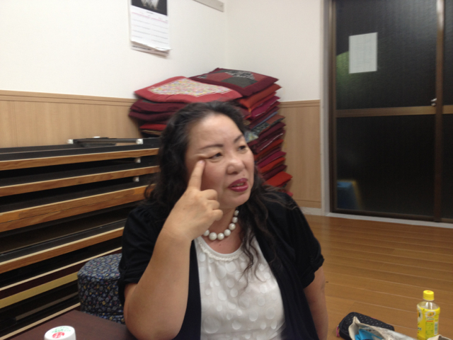 扇子でパタパタ扇ぎながら、打ち合わせ。