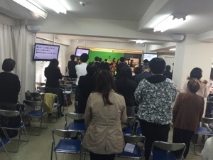 秋元さんの賛美の時。 皆さん、心から礼拝しています。