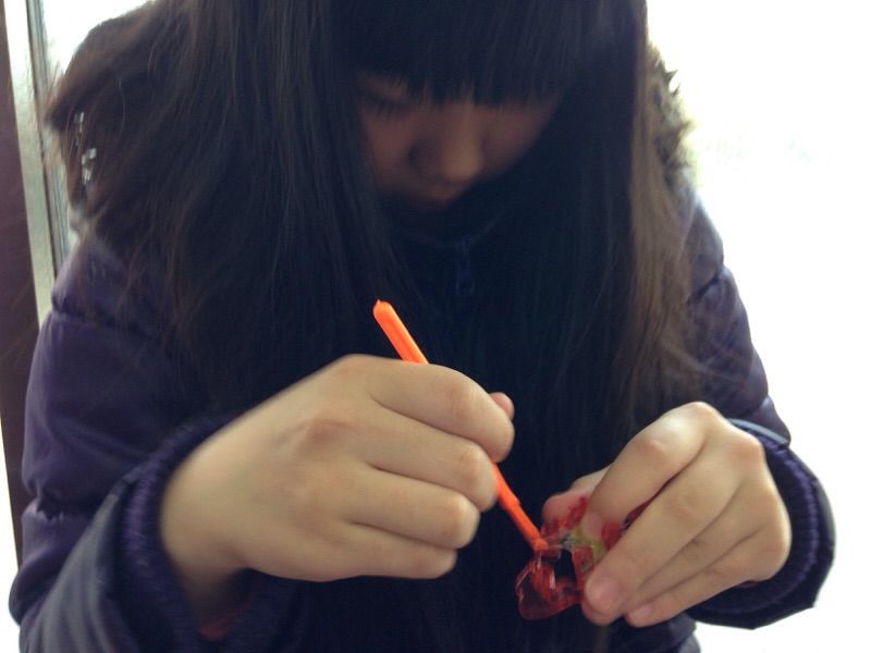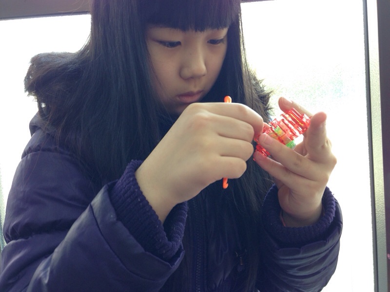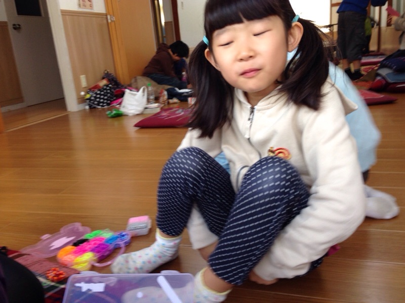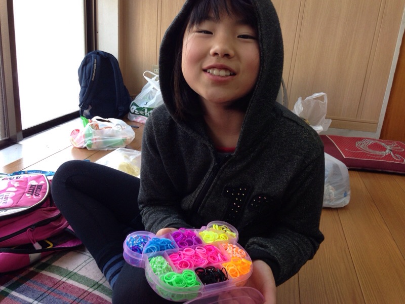 あっちゃん、カラフルなゴムで、何か作ってます♫(いただきま~す 小代)