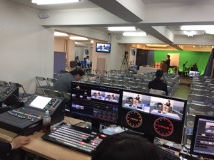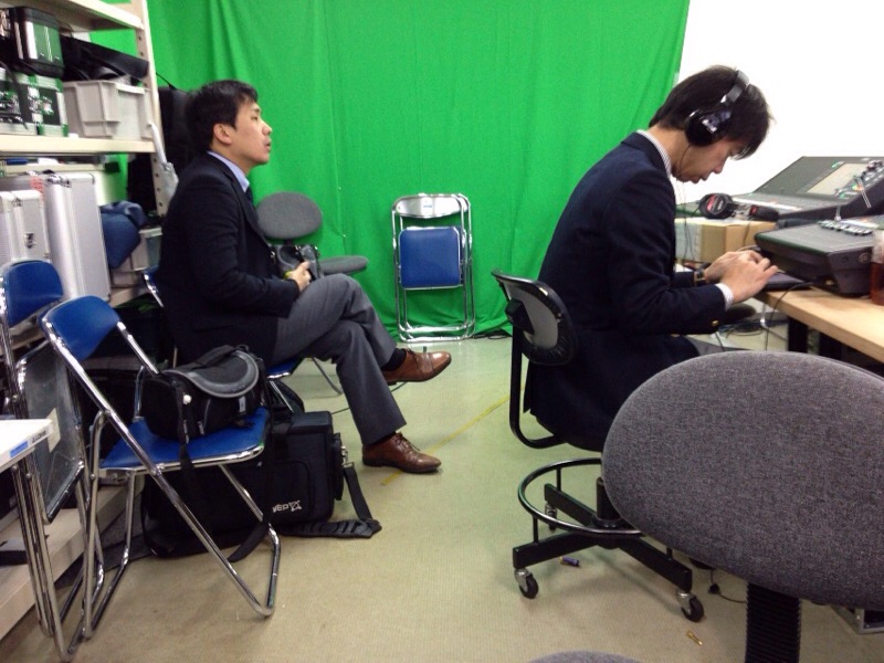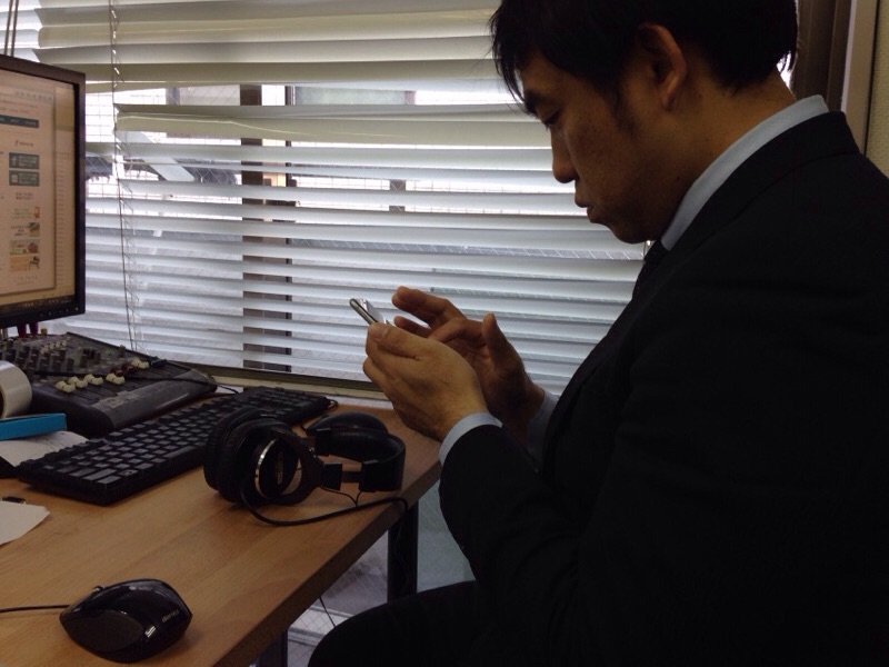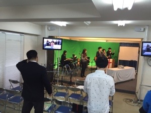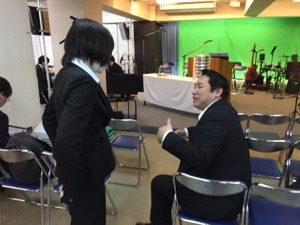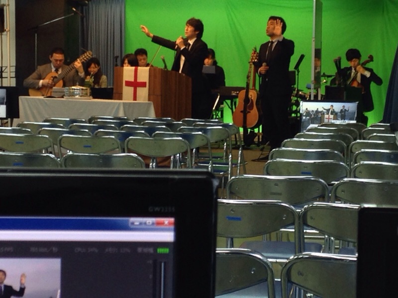 ドタバタラジオの真境名さん、苫米地さんに賛美の選曲を伝えています。