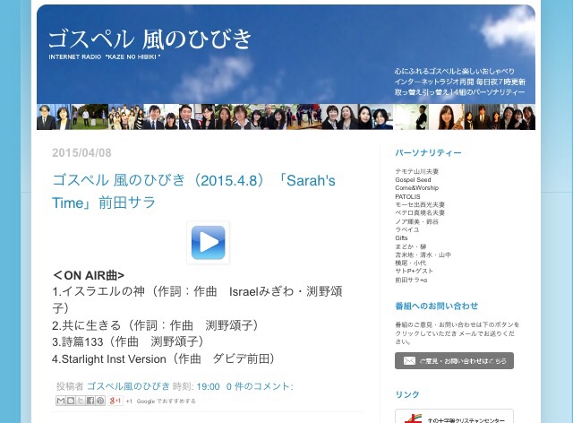 インターネットラジオ「ゴスペル風のひびき」、現在サラちゃん。