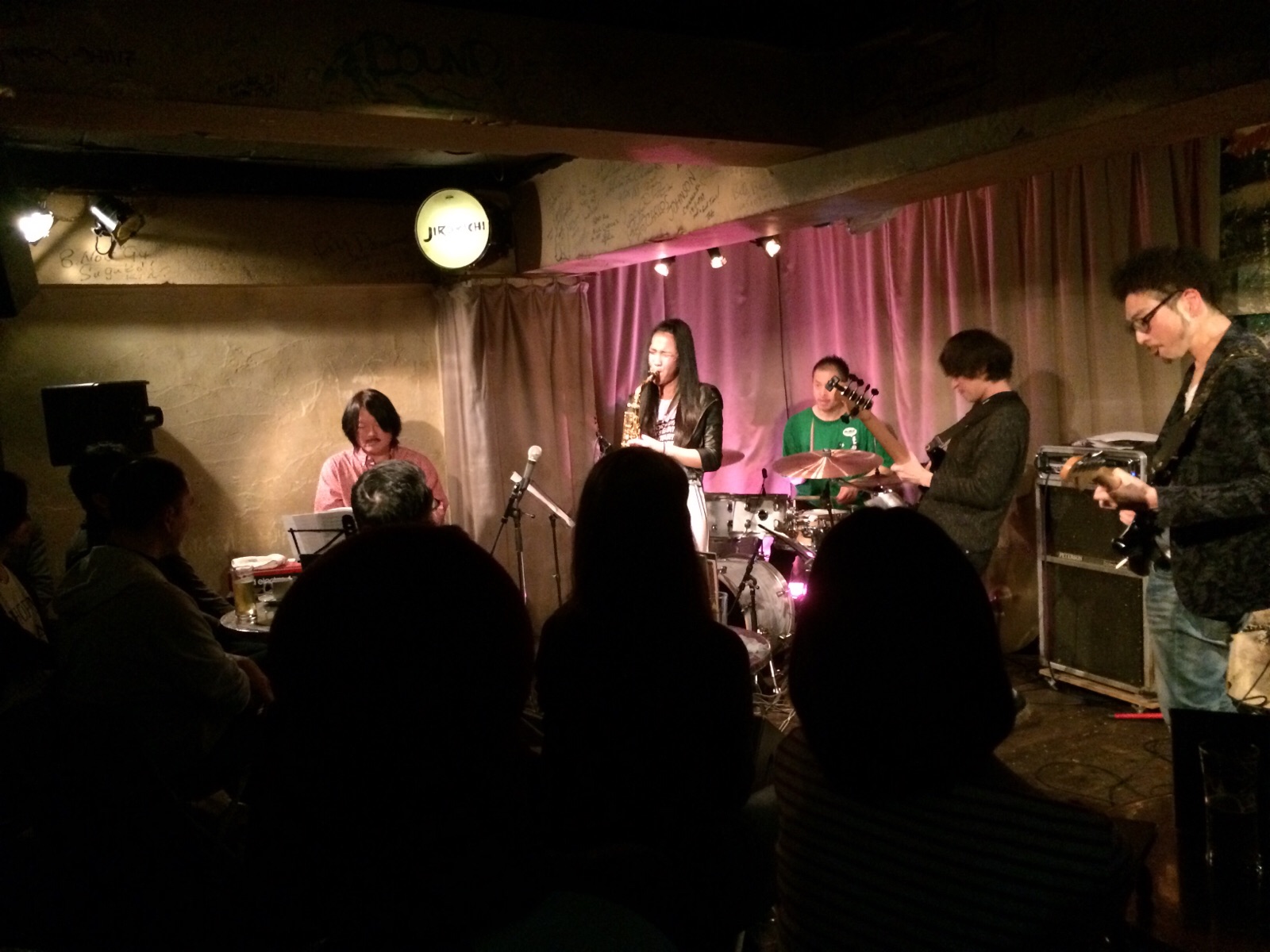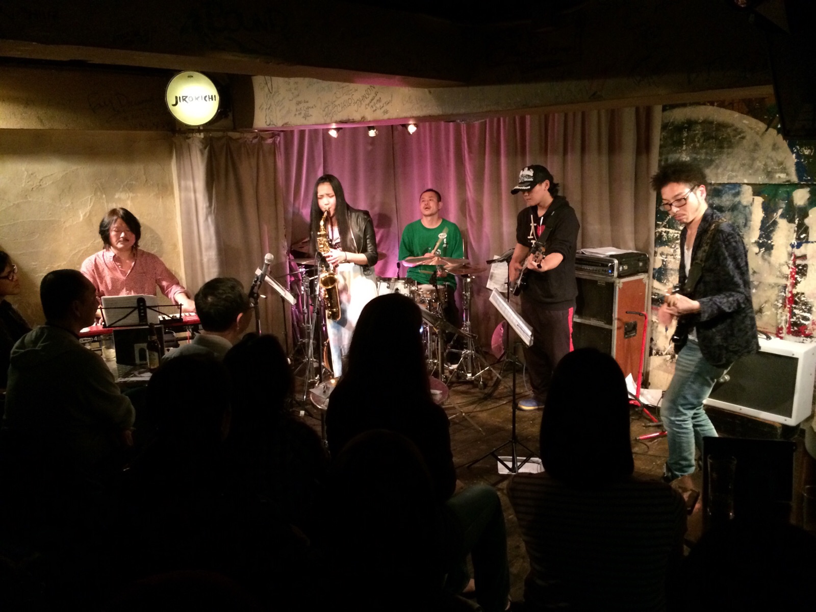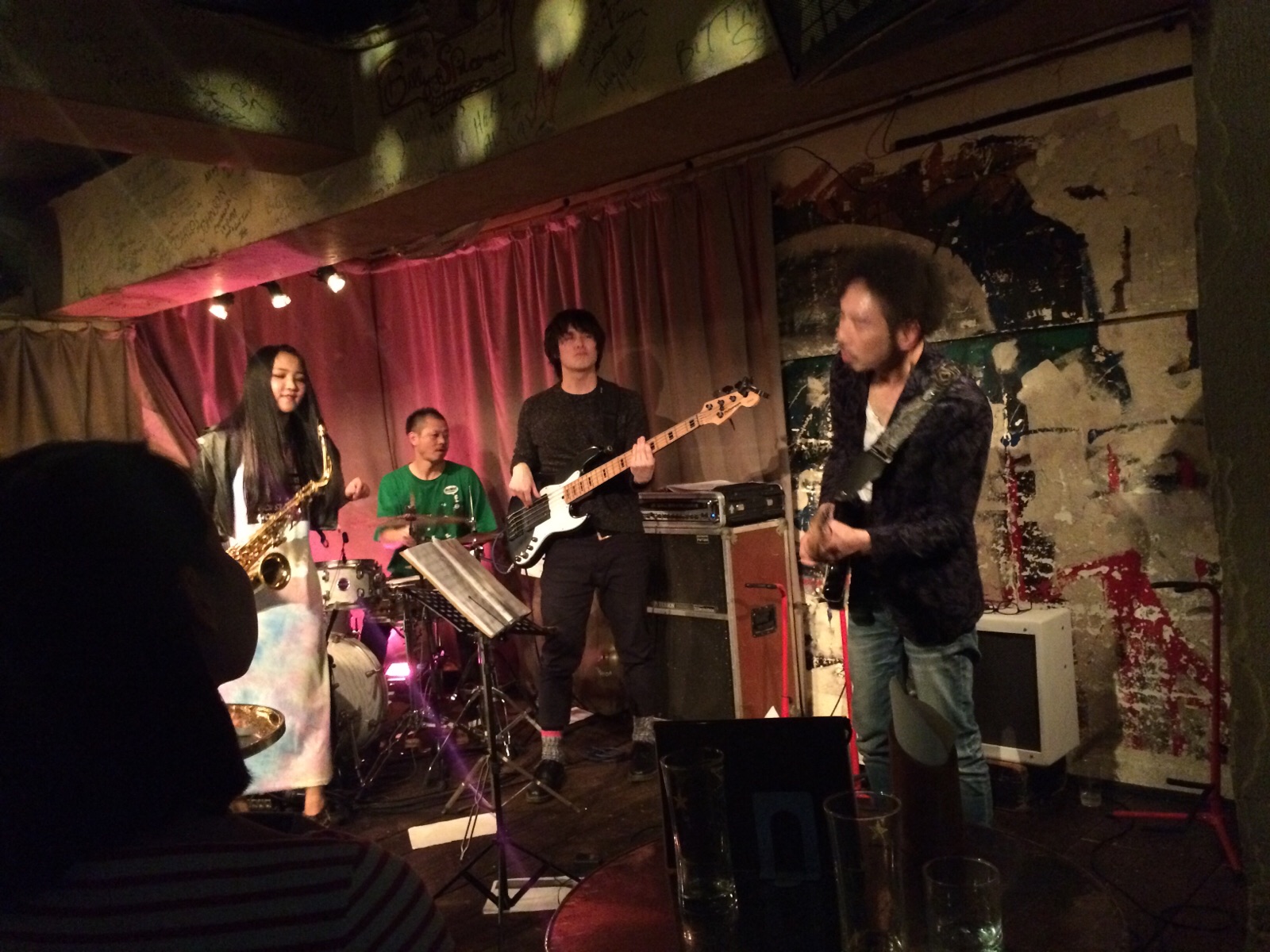 サラちゃん、高円寺でライブ中♫立ち見まで出る盛況ぶりです。アンドレ・クラウチさんのJesus is the answer を演奏してます! 父ちゃん!時間ですよ